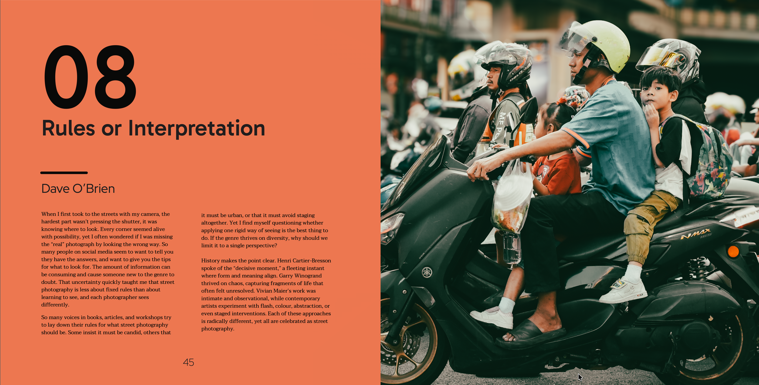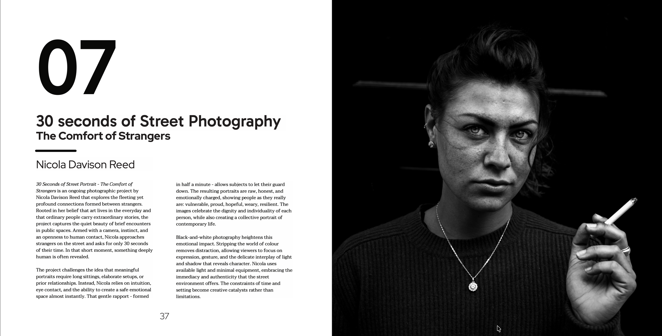 This magazine is an excellent addition to the world of Street and Documentary Photography. It has been a valuable source of learning for me, and I regularly follow several of the authors whose insightful articles appear within its pages.
